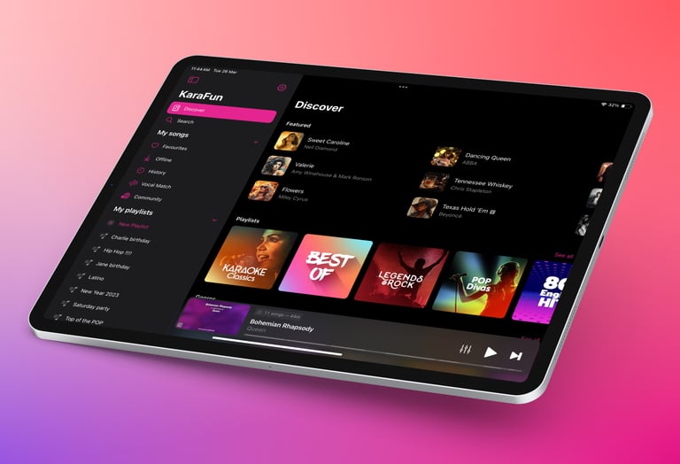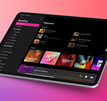 Nous travaillons avec une plateforme "Karafun" qui permet d'avoir accès à des milliers de karaokés ! Encore mieux, vous pourrez ajouter vous même depuis vos téléphones les chansons que vous souhaitez chanter en playlist !